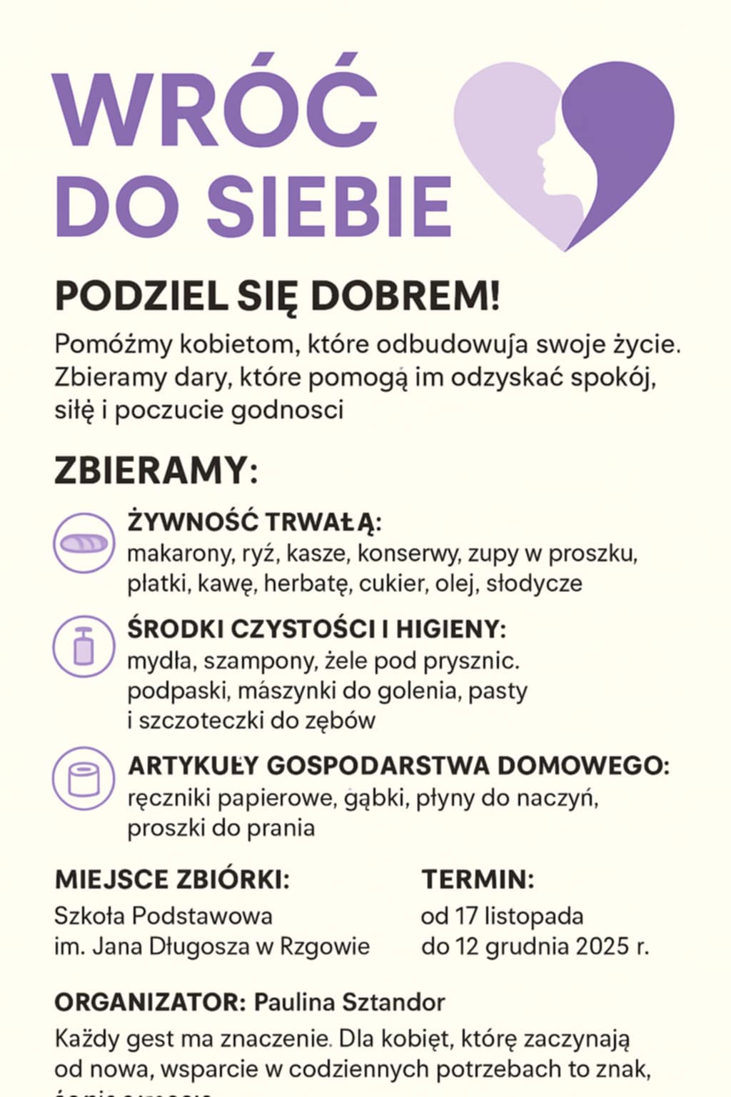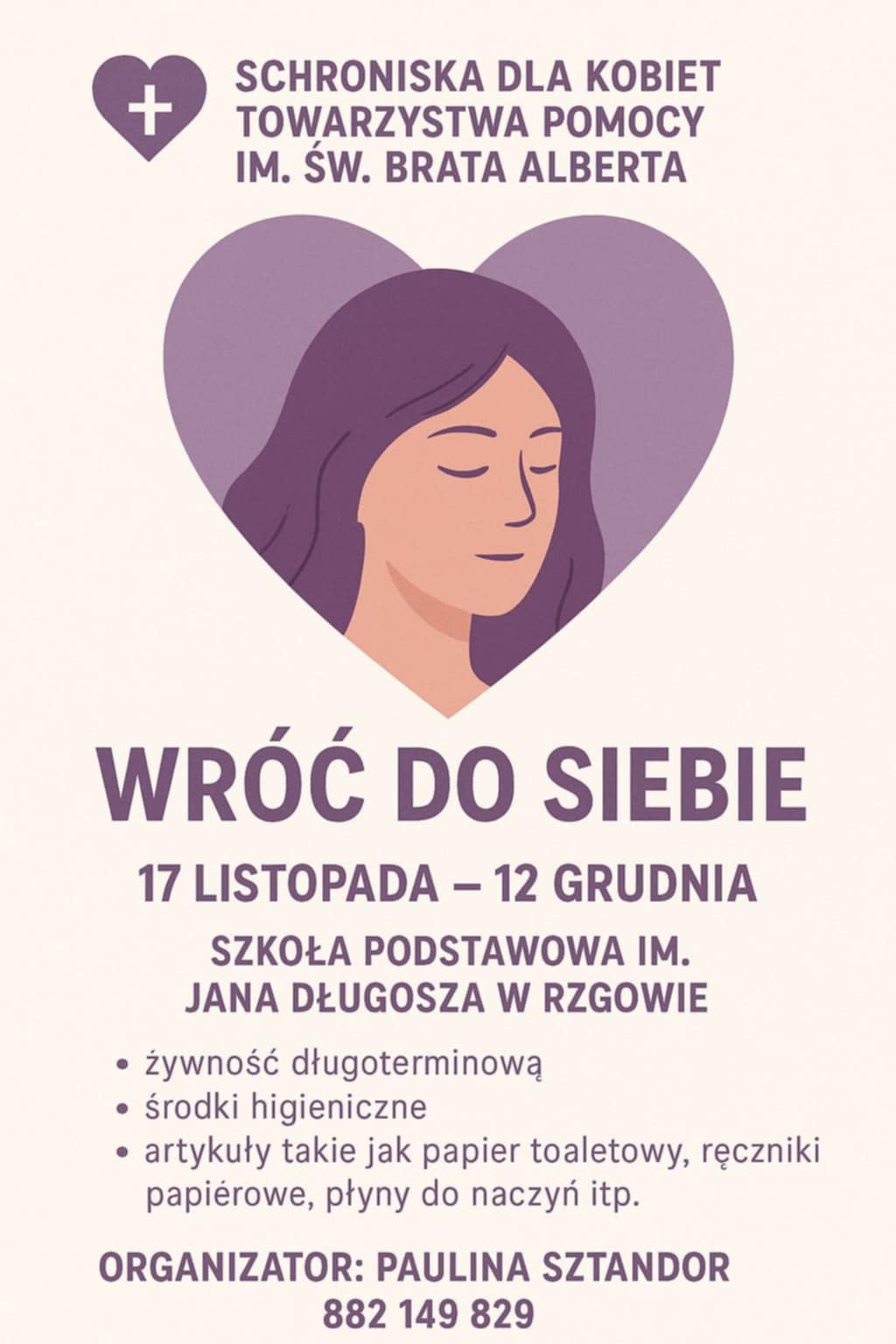 Nasza szkoła włącza się w akcję charytatywną „Wróć do siebie”, która ma na celu wsparcie samotnych kobiet przebywających w schroniskach Towarzystwa Pomocy im. św. Brata Alberta. To inicjatywa niosąca realną pomoc tym, które odbudowują swoje życie i potrzebują podstawowych artykułów codziennego użytku.