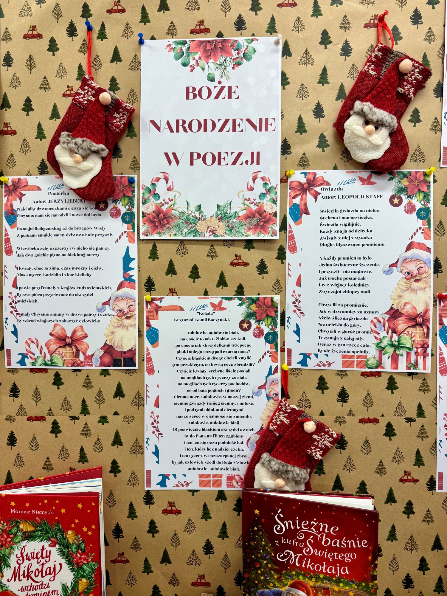 Zima to czas, w którym świat zwalnia, a w sercach pojawia się miejsce na ciepło, radość i refleksję. Właśnie dlatego w naszej bibliotece znajdziecie coś niezwykłego – świąteczną wystawę wierszy o Bożym Narodzeniu, pełną poezji, nastroju i wyjątkowych słów, które pomagają poczuć prawdziwą magię świąt.