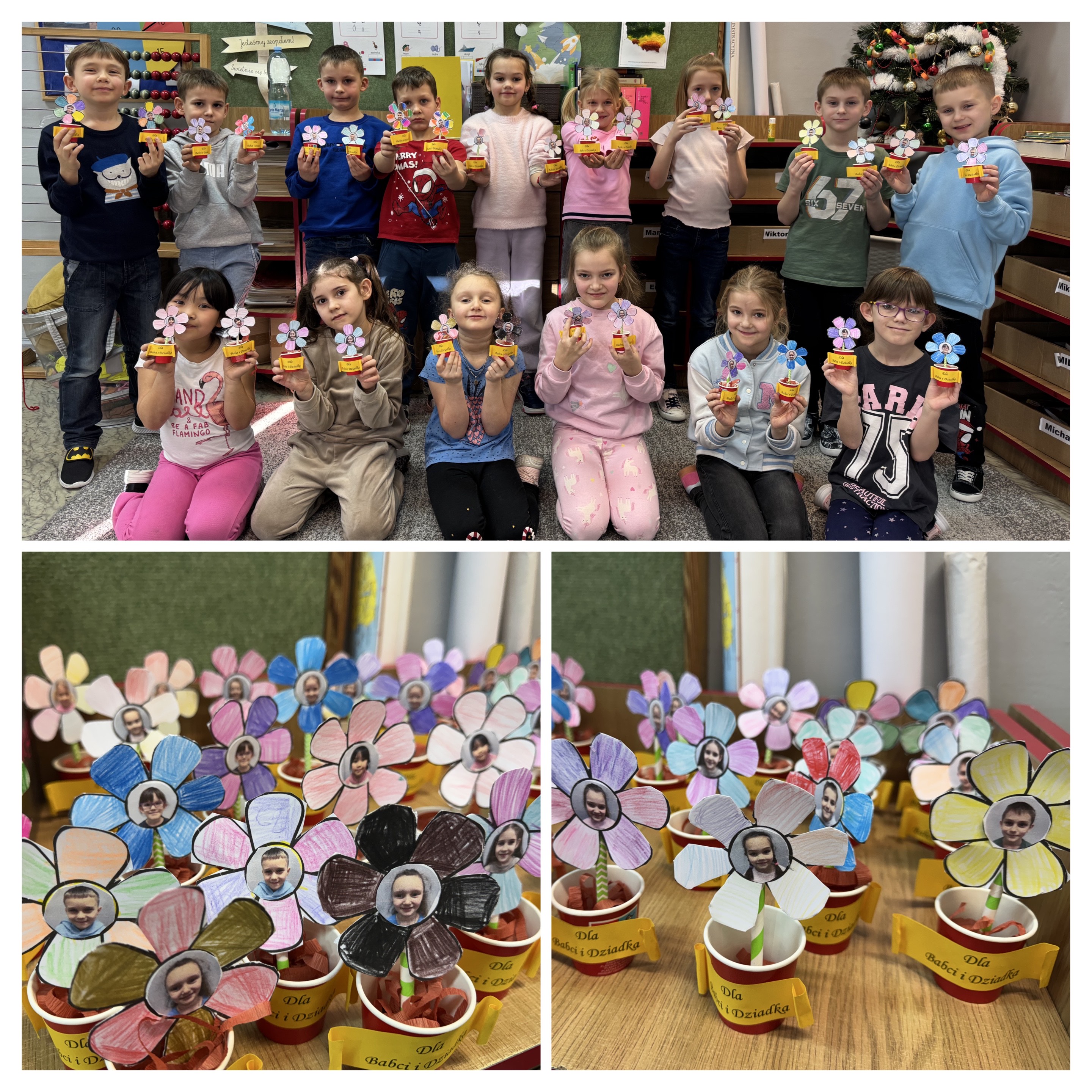 Z okazji Dnia Babci i Dziadka uczniowie klasy 1b z ogromnym zaangażowaniem i radością przygotowali wyjątkowe upominki. Dzieci własnoręcznie wykonały papierowe kwiatki umieszczone w doniczkach z kubków, a w środku każdego kwiatka znalazło się zdjęcie wnuczki lub wnuczka. Pracom towarzyszyło wiele rozmów o tym, jak ważni są dziadkowie, ile dobra i ciepła wnoszą w życie swoich wnuków oraz jak bardzo są przez nich kochani.