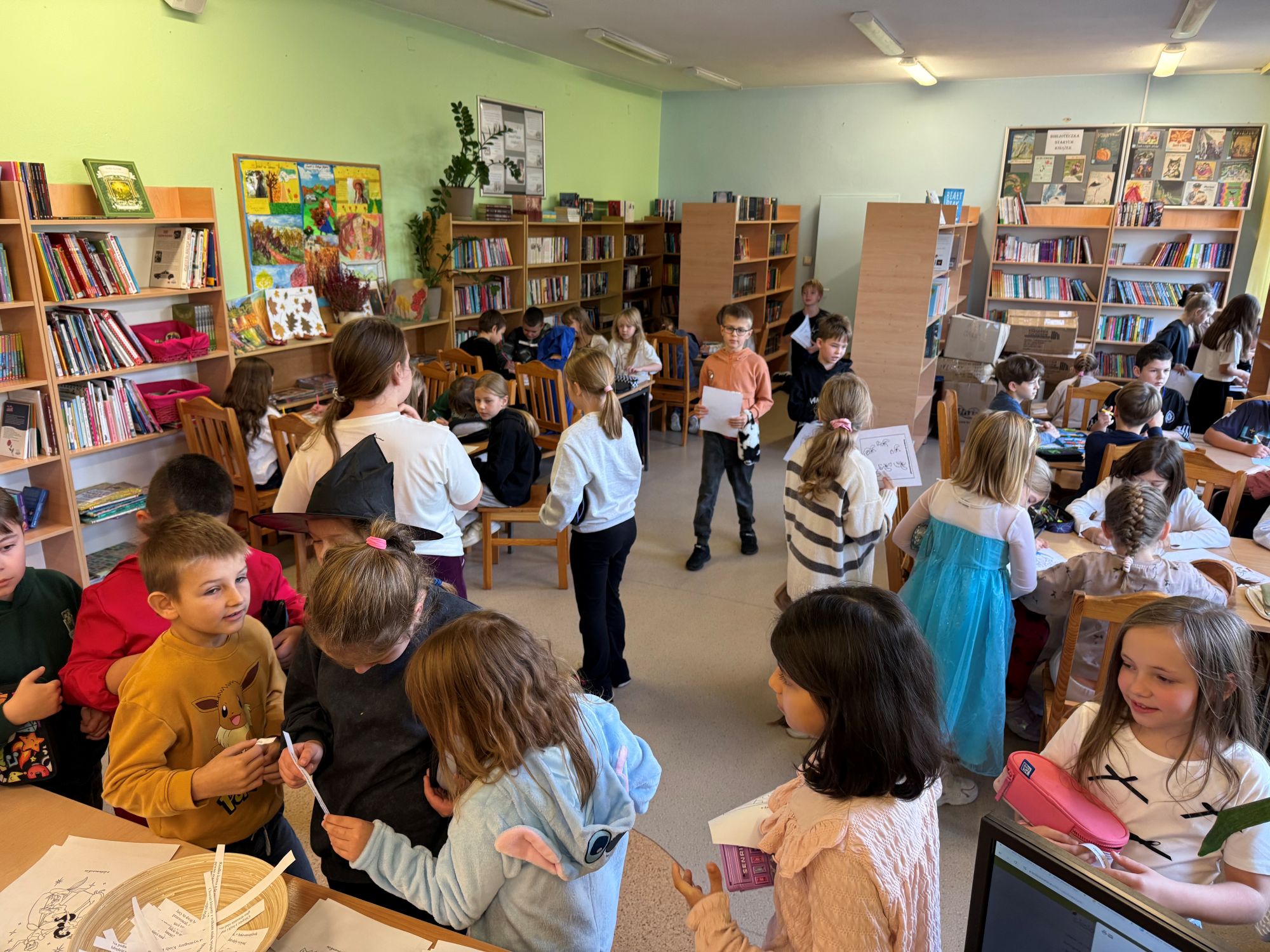 Nie zabrakło też niespodzianek i drobnych nagród dla najaktywniejszych uczestników. Zainteresowanie było ogromne – przed biblioteką ustawiła się długa kolejka uczniów, którzy chcieli wziąć udział w zabawie i spędzić czas w bajkowej atmosferze.