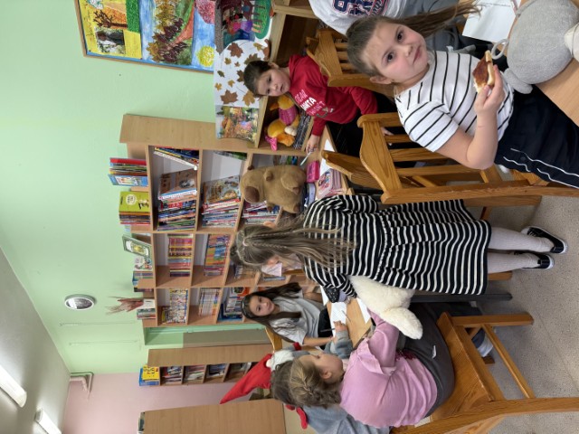 Pierwszym punktem zajęć było czytanie fragmentu książki o Paddingtonie. Dzieci z zainteresowaniem śledziły przygody misia, poznając jego dobre serce, poczucie humoru i niezwykłą zdolność pakowania się w tarapaty.