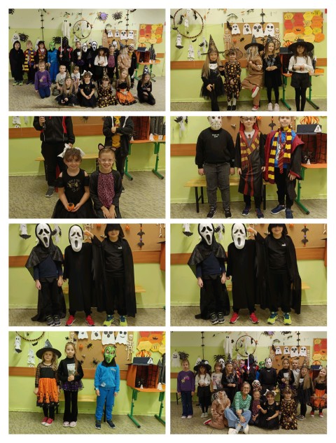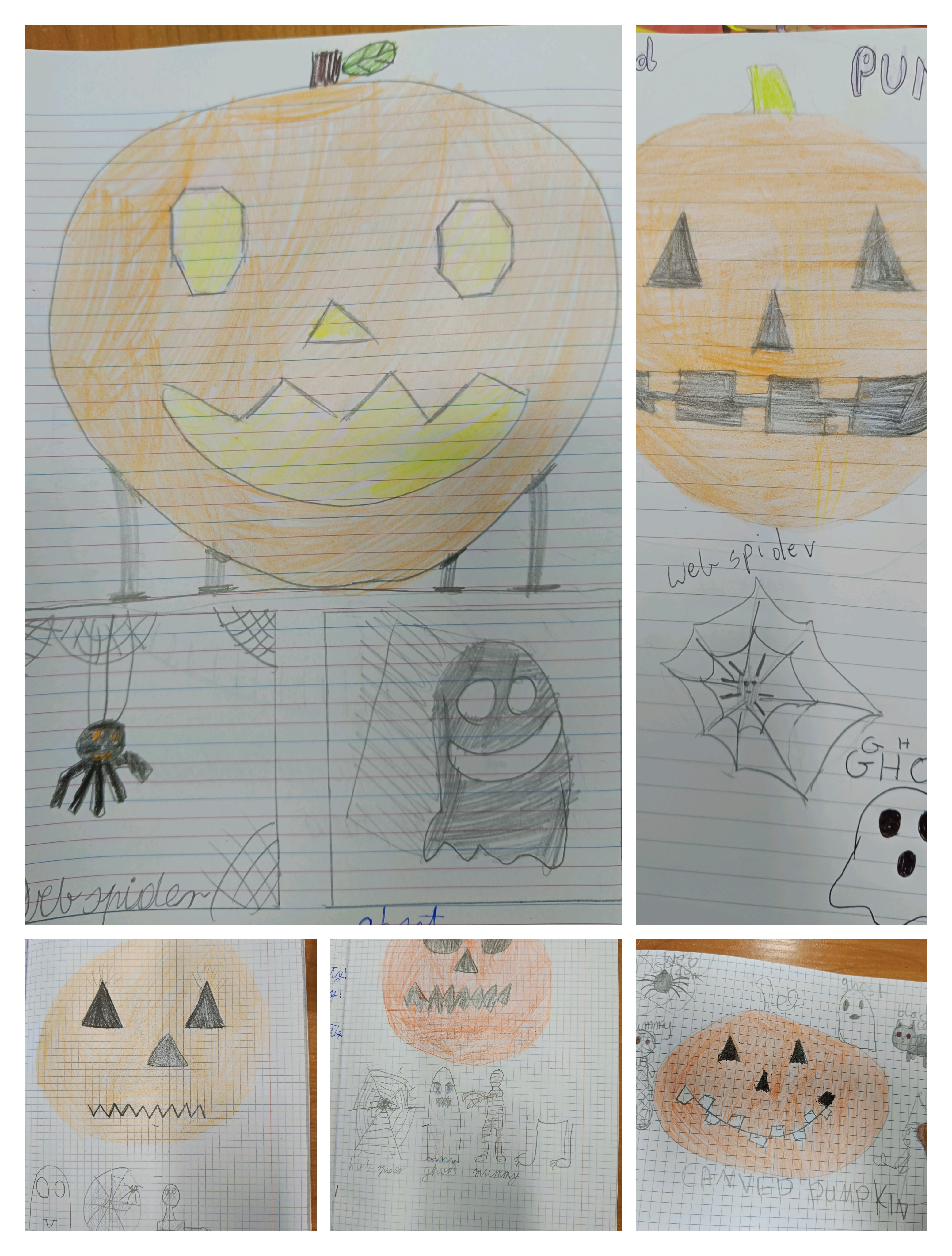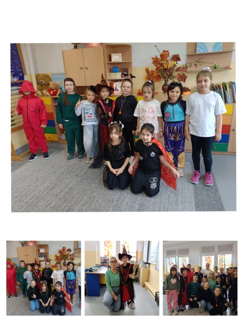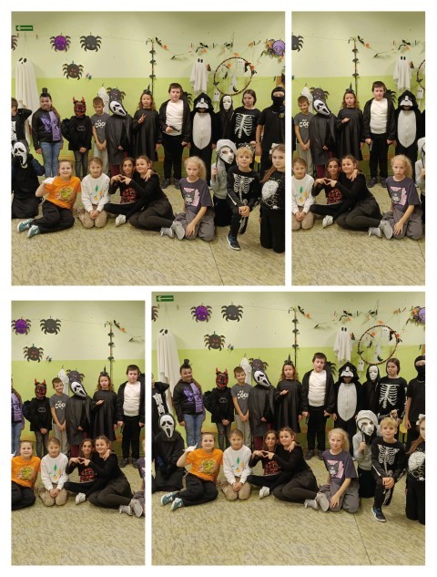 Podczas zajęć młodsi uczniowie (klasy 1–3) brali udział w kreatywnych zabawach językowych – rysowali dynie , tworzyli kolorowe maski czarownic i duchów, a także uczyli się nowych słówek związanych z Halloween. Dzięki temu dzieci rozwijały swoje umiejętności plastyczne i językowe jednocześnie.