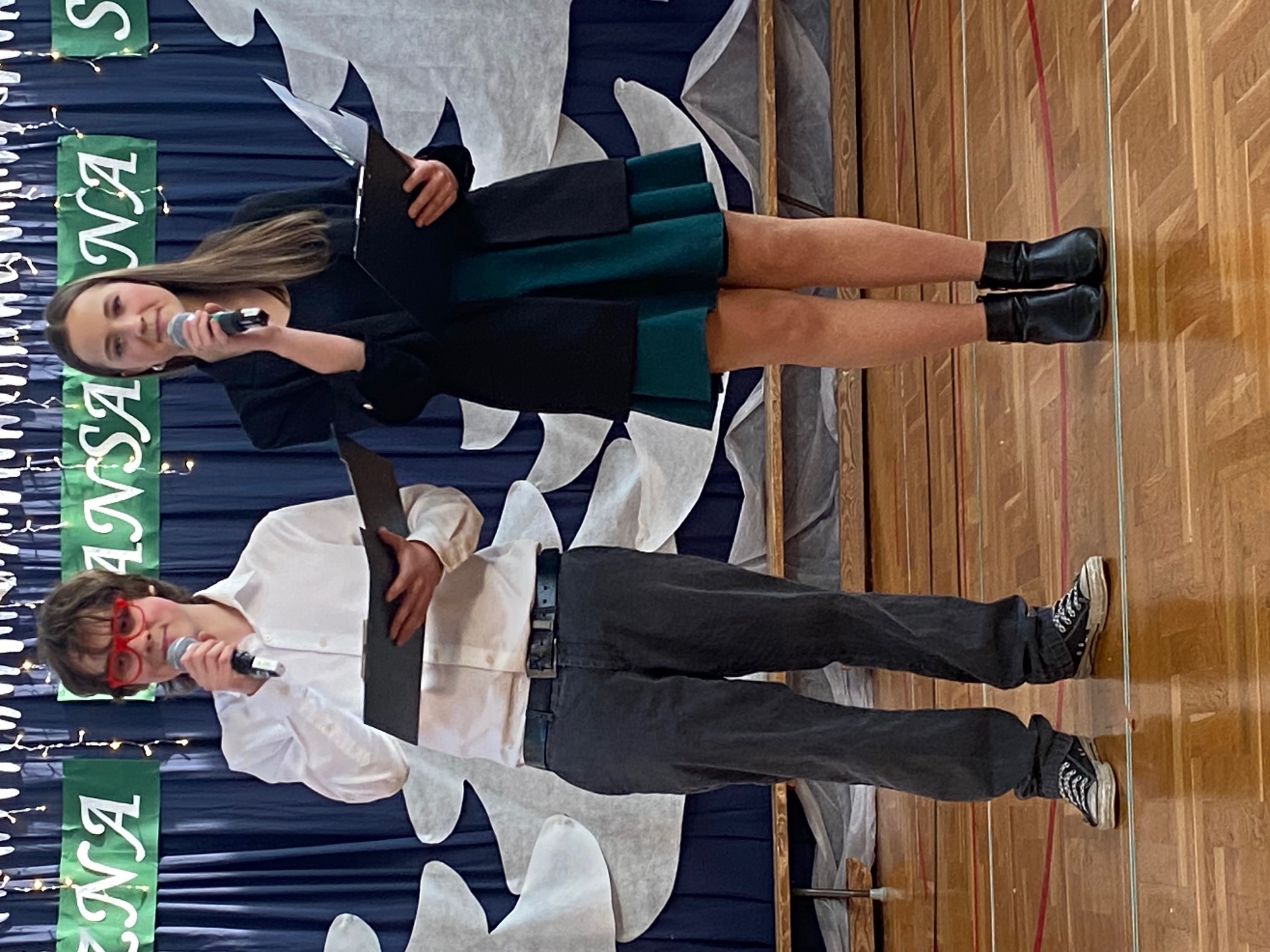 Także druga część konkursu była bardzo ekscytująca. Zmienił się trochę skład jury, pozostał w nim nadal pan Marek Bińkowski, w skład jury weszły także: wicedyrektor szkoły- pani Agnieszka Kosińska, nauczycielka matematyki- pani Malwina Wasilak oraz wiceprzewodnicząca Samorządu Szkolnego- Alicja Pietraszczyk. Konkurs poprowadzili uczniowie klas ósmych- Franciszek Hen oraz Marianna Fałek.