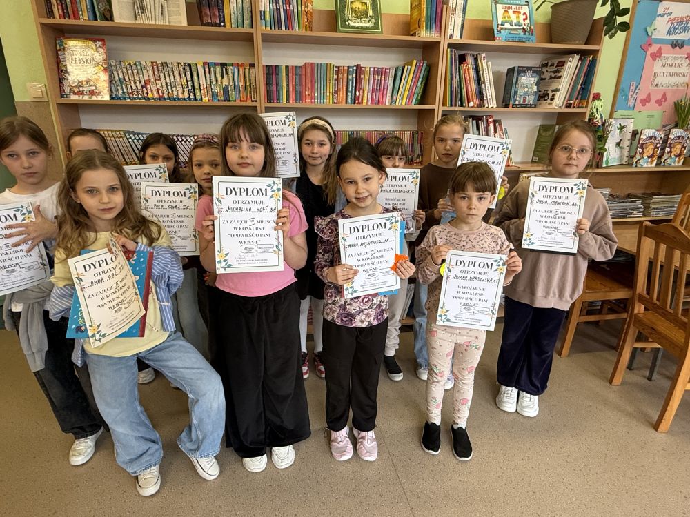 27 marca 2026 roku w bibliotece szkolnej rozstrzygnięto konkurs plastyczny pod hasłem „Opowieść o Pani Wiośnie”, skierowany do uczniów klas 1–8. Inspiracją dla młodych artystów był wiersz o tym samym tytule, zachęcający do twórczej interpretacji budzącej się do życia przyrody oraz symboliki nowego początku.