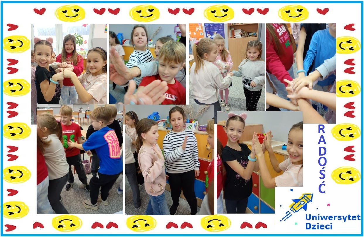 Uczniowie naszej klasy wzięli udział w lekcji pt. „Skąd się bierze radość?”, przygotowanej we współpracy z Uniwersytetem Dzieci w Klasie. Zajęcia miały na celu rozwijanie umiejętności rozpoznawania i wyrażania emocji, budowanie pozytywnej atmosfery oraz wzmacnianie współpracy, wzajemnego wsparcia i życzliwości w grupie.