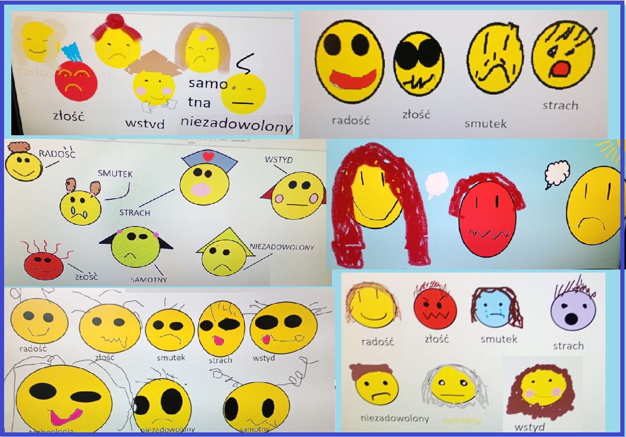 Na zajęciach informatycznych uczniowie rysowali również buźki wyrażające różne emocje w programie Paint, ćwicząc w ten sposób zarówno kreatywność, jak i umiejętność rozpoznawania oraz przedstawiania uczuć za pomocą prostych narzędzi graficznych.
