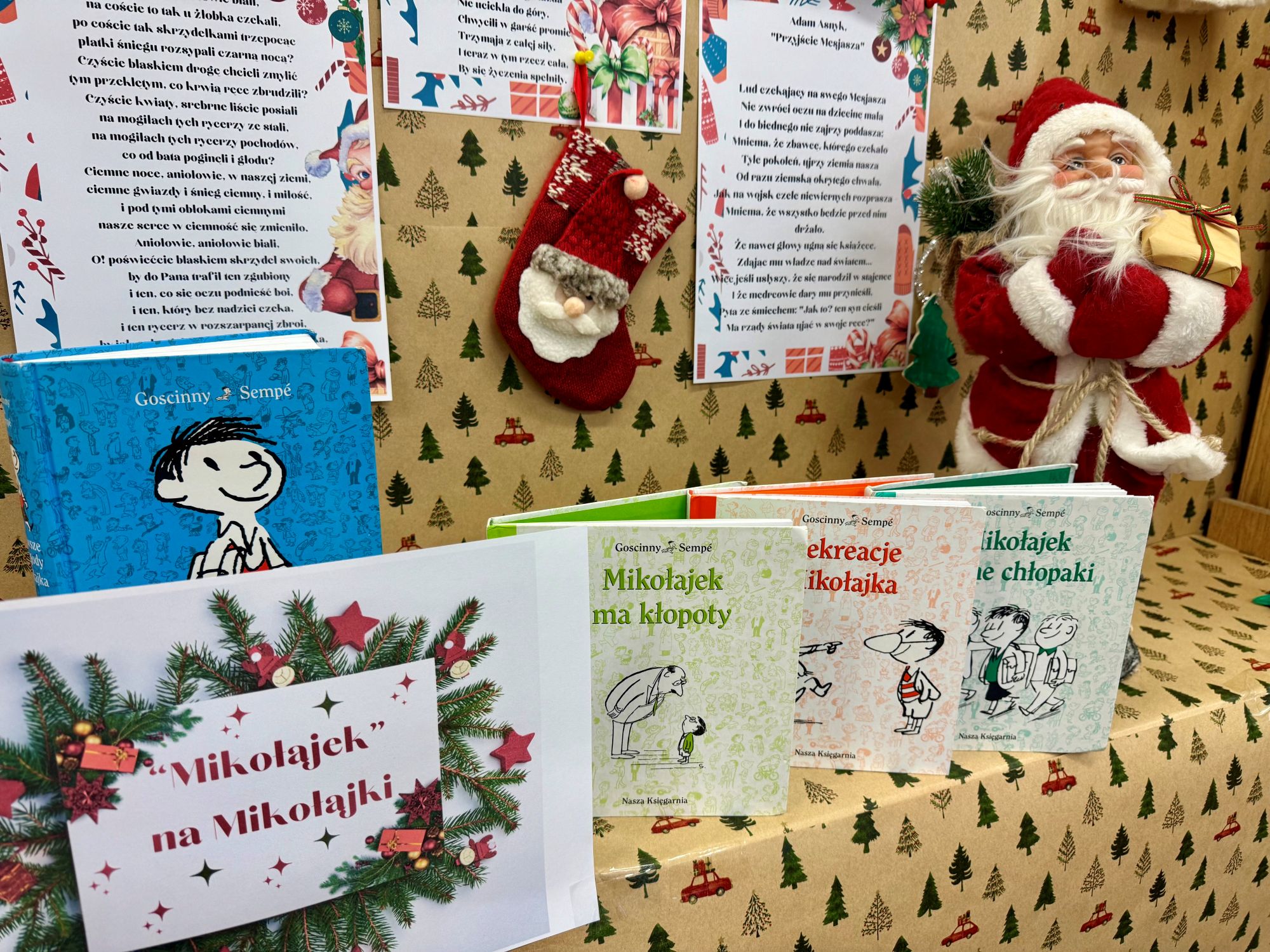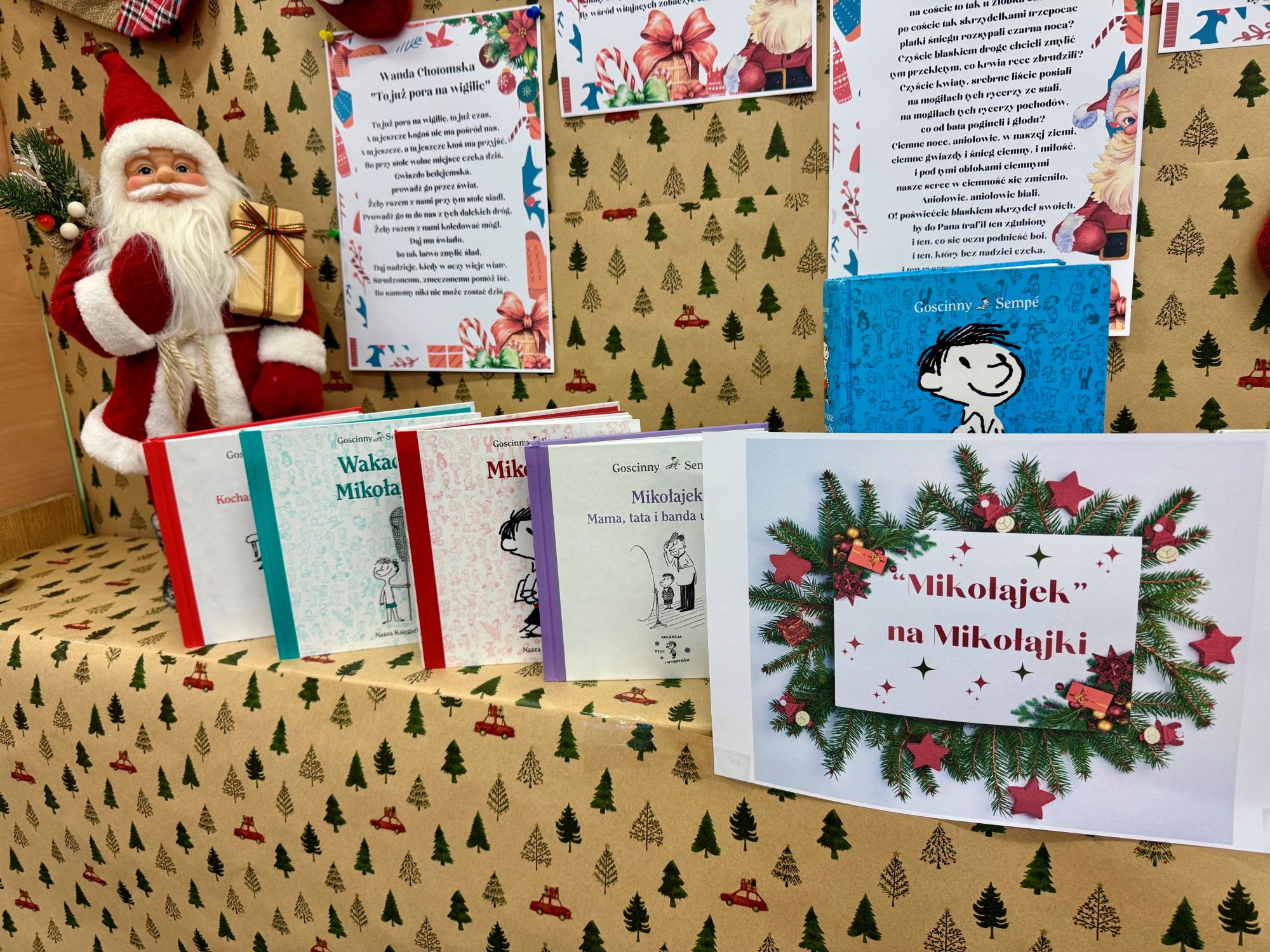 Z okazji tegorocznych obchodów Mikołajek zapraszamy wszystkich uczniów do sięgnięcia po pełną humoru i ciepła serię książek „Mikołajek” autorstwa René Goscinny’ego z ilustracjami Jean-Jacques’a Sempé. W bibliotece czeka na Was specjalna półka tematyczna z książkami z serii „Mikołajek”.