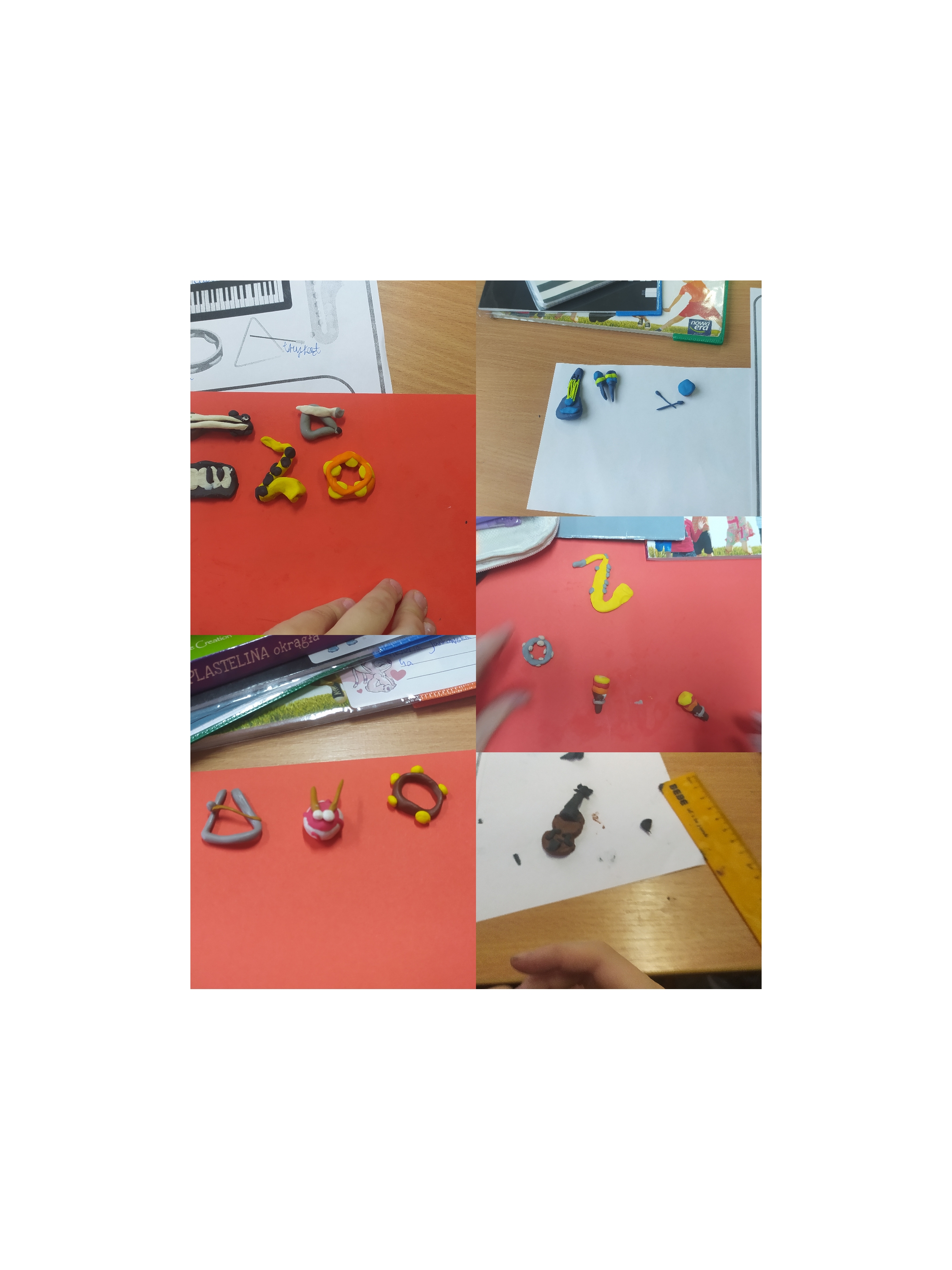 Podczas lekcji uczniowie najpierw przypomnieli sobie podział instrumentów muzycznych oraz ich charakterystyczne cechy. Następnie, wykorzystując plastelinę, projektowali i wykonywali własne modele instrumentów, dbając o ich kształt, detale oraz kolorystykę. Każda praca była inna i odzwierciedlała indywidualne pomysły oraz kreatywność młodych twórców. Po zakończeniu pracy uczniowie prezentowali swoje instrumenty, opowiadając, do jakiej grupy instrumentów należą i w jaki sposób wydobywa się z nich dźwięk.