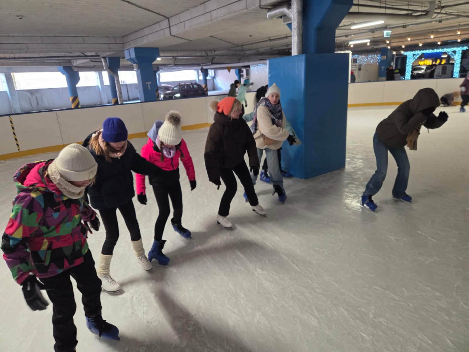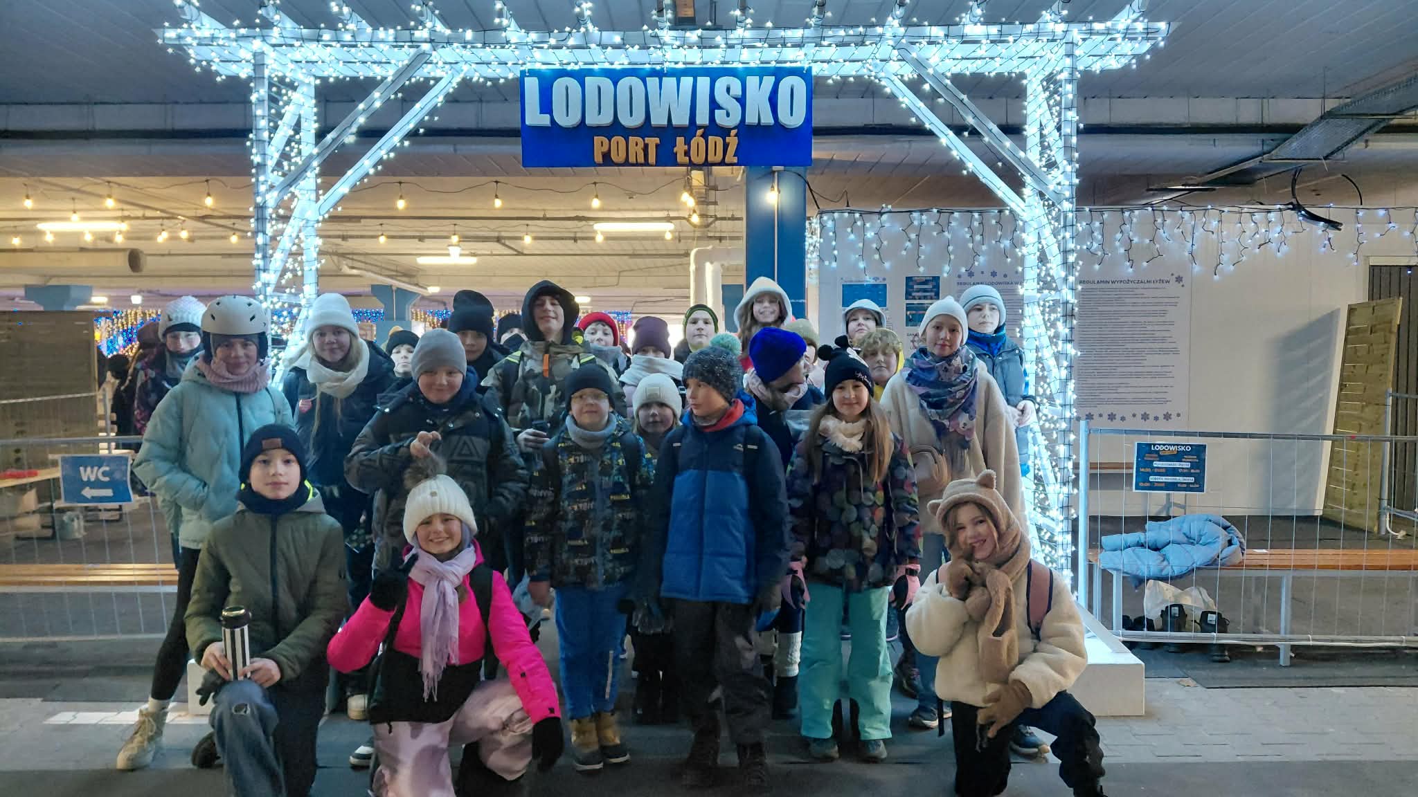 My się zimy nie boimy i na łyżwach jeździmy, pod takim hasłem odbyły się 31 stycznia 2026 roku kolejne zajęcia turystyczno – sportowe realizowane przy Urzędzie Miejskim w Rzgowie. Tym razem uczestnicy zajęć pod opieką p. Agnieszki Ruty i p. Marcina Łukaszewskiego wyruszyli w teren i ponad dwie godziny spędzili na lodowisku w Porcie Łódź. Uczniowie zmierzyli się z prawdziwym, zimowym wyzwaniem, ponieważ niektórzy po raz pierwszy założyli na nogi łyżwy, a pozostali mieli okazję doskonalić swoje umiejętności, korzystając ze wskazówek opiekunów. Piruety, jaskółki, hamowanie bokiem i przodem płozy oraz pierwsze próby jazdy do tyłu – taki program sportowych zajęć zrealizowali uczestnicy sobotnich zajęć. Ułatwieniem dla debiutantów były specjalnie przygotowane pingwinki, które pełniły rolę jeżdżącej podpory. Zabawa była świetna i przede wszystkim bezpieczna. Wszyscy cali i zdrowi wrócili do Rzgowa późnym popołudniem, i już czekają na kolejne zajęcia, które odbędą się jeszcze w lutym.