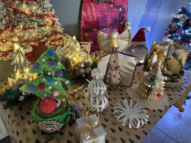 W okresie przedświątecznym w naszej szkole odbył się konkurs biblioteczny pod hasłem „Nowe życie starej książki”, który spotkał się z dużym zainteresowaniem uczniów. Zadaniem uczestników było wykonanie bożonarodzeniowych ozdób z wykorzystaniem elementów starych, zniszczonych książek, które dzięki kreatywności młodych twórców zyskały zupełnie nowe oblicze.