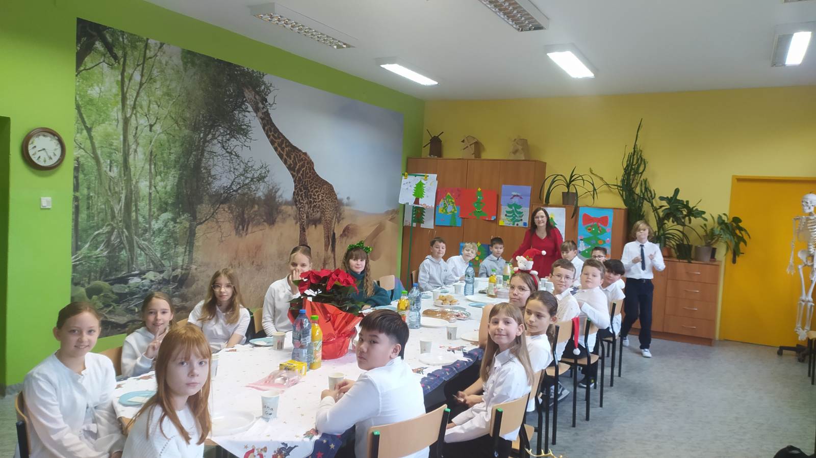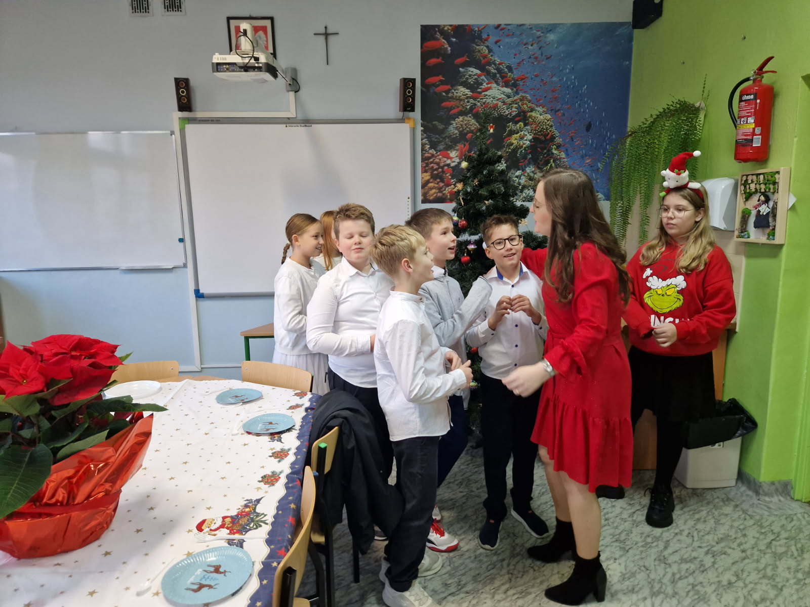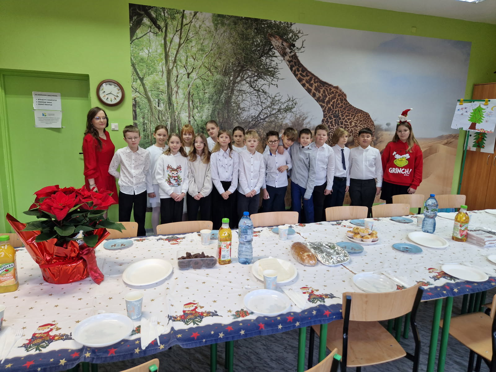 19.12.2025 r. w klasie 4b odbyło się wyjątkowe spotkanie wigilijne, pełne ciepła, radości i świątecznej atmosfery. Był to czas wspólnego przeżywania tradycji bożonarodzeniowych oraz budowania klasowej wspólnoty.Uczniowie samodzielnie zaangażowali się w organizację uroczystości- zadbali o wystrój sali, potrawy oraz przebieg spotkania. Podczas wigilii klasowej składaliśmy sobie serdeczne życzenia, dzieliliśmy się opłatkiem, a wspólne rozmowy i uśmiechy stworzyły wyjątkowy klimat.