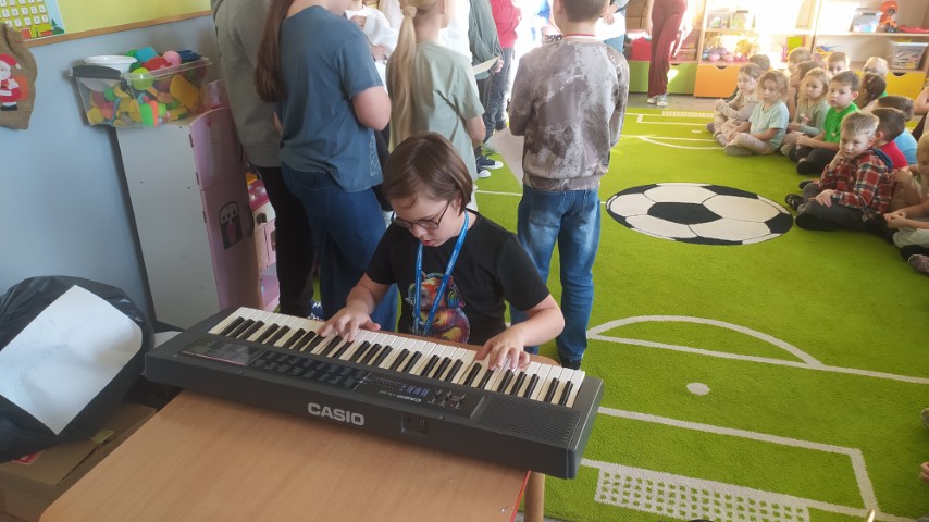 Podczas występu zabrzmiały znane i lubiane kolędy i pastorałki m.in. „Przybieżeli do Betlejem”, „Wśród nocnej ciszy”, „Pastuszek bosy” oraz „Świeć gwiazdeczko”. Chór klasy 4a zaśpiewał je z wielkim zaangażowaniem, a całości towarzyszył instrumentalny akompaniament Mateusza, który zagrał na pianinie, dodając występowi wyjątkowego brzmienia.