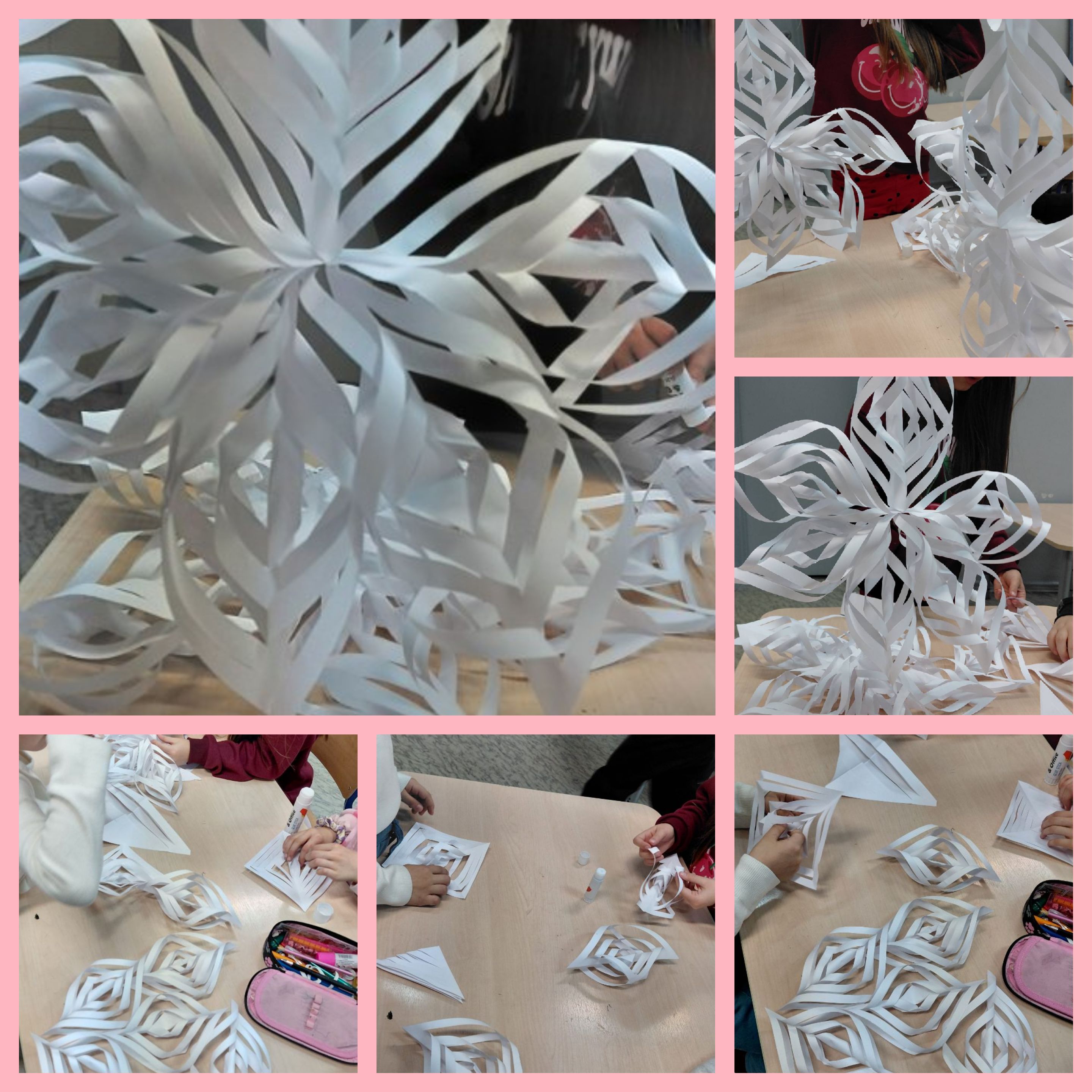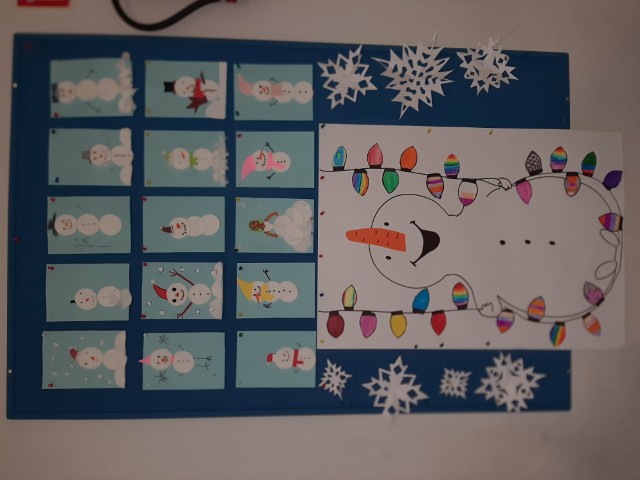 W ramach zajęć plastycznych wycinaliśmy śnieżynki oraz wykonywaliśmy różnorodne dekoracje zimowe i świąteczne. Powstawały papierowe choinki, bałwanki, gwiazdki, łańcuchy i inne ozdoby, które wspólnie wykorzystaliśmy do udekorowania świetlicy. Grudniowe zajęcia sprzyjały rozwijaniu kreatywności, zdolności manualnych oraz budowaniu radosnej, ciepłej atmosfery zimowo-świątecznej.