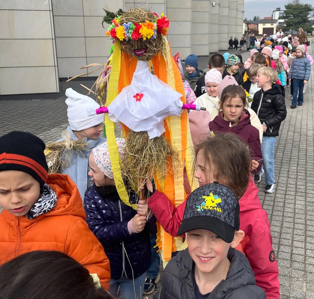 20 marca 2026 r. uczniowie klas pierwszych naszej szkoły wzięli udział w radosnym wydarzeniu związanym z tradycyjnym pożegnaniem zimy i powitaniem wiosny. Tego dnia dzieci uczestniczyły w uroczystym paleniu marzanny – symbolu odchodzącej zimy, przygotowanej przez Gminny Ośrodek Kultury.