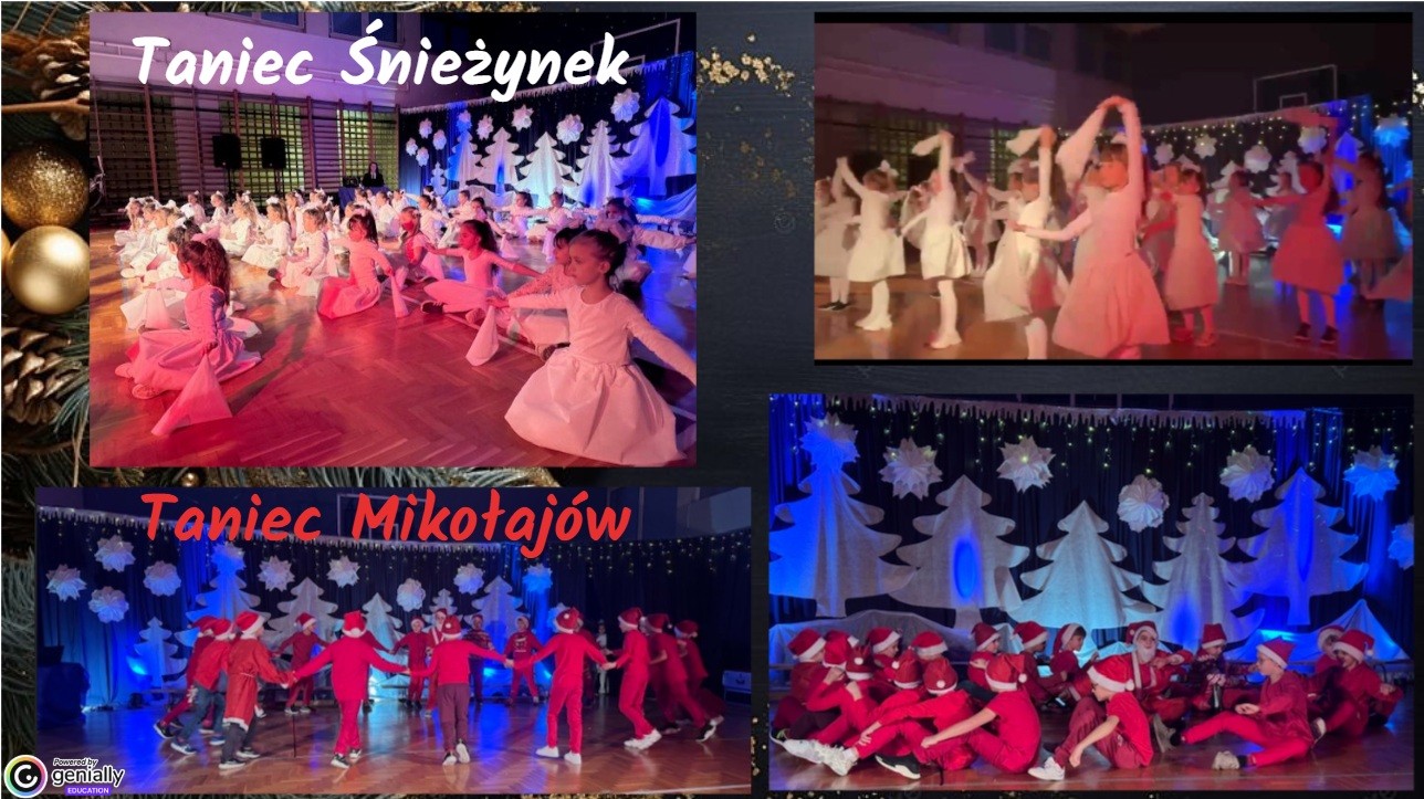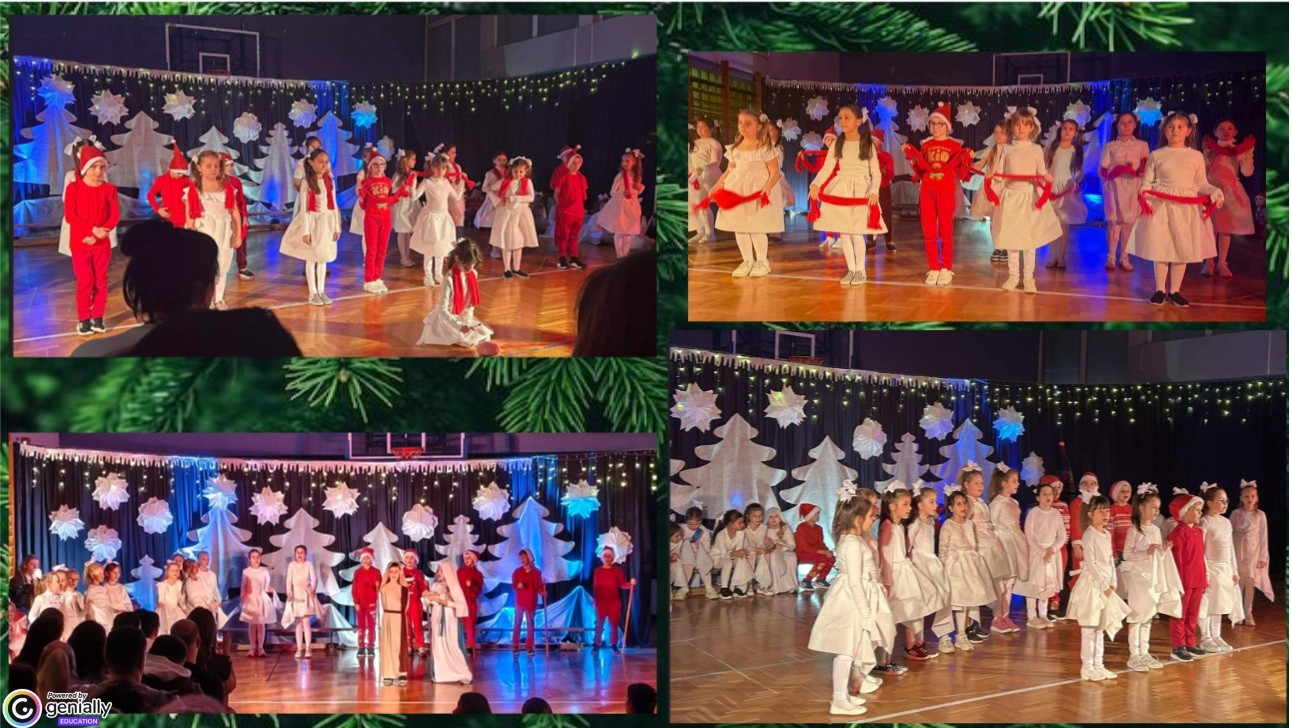 Uczniowie klas IIa, IIb oraz IIc z wielkim zaangażowaniem zaprezentowali przygotowany program artystyczny. Swoimi występami zachwycili zgromadzoną publiczność, prezentując umiejętności wokalne i taneczne. Gości powitali żywiołowi, pełni energii i humoru Mikołaje, którzy od pierwszych chwil wywołali uśmiech na twarzach zgromadzonych. Następnie na scenie pojawiły się Śnieżynki, których nastrojowy, pełen wdzięku taniec wprowadził Rodziców w chwilę zadumy i świątecznej refleksji.