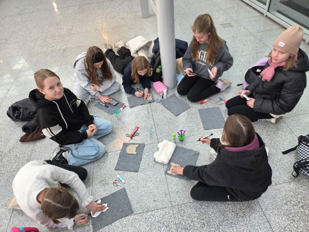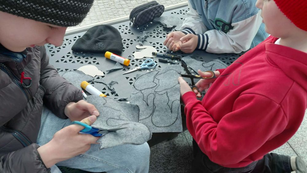 Drugie zadanie przygotowane dla uczniów było prawdziwym, artystycznym wyzwaniem. Opiekunowie przygotowali dla wszystkich filcowe arkusze, tekturowe szablony oraz kolorowe elementy dekoracyjne również z filcu, a wszystko po to, żeby powstały z nich oryginalne podkładki pod kubeczki w kształcie kotów. Pomysły na zdobienia były naprawdę ciekawe, a sama praca z filcem okazała się prawdziwym wyzwaniem. Kocia przygoda obfitowała w nowe doświadczenia, te turystyczne, ale i te artystyczne, które na długo pozostaną w pamięci uczniów ze Rzgowa.