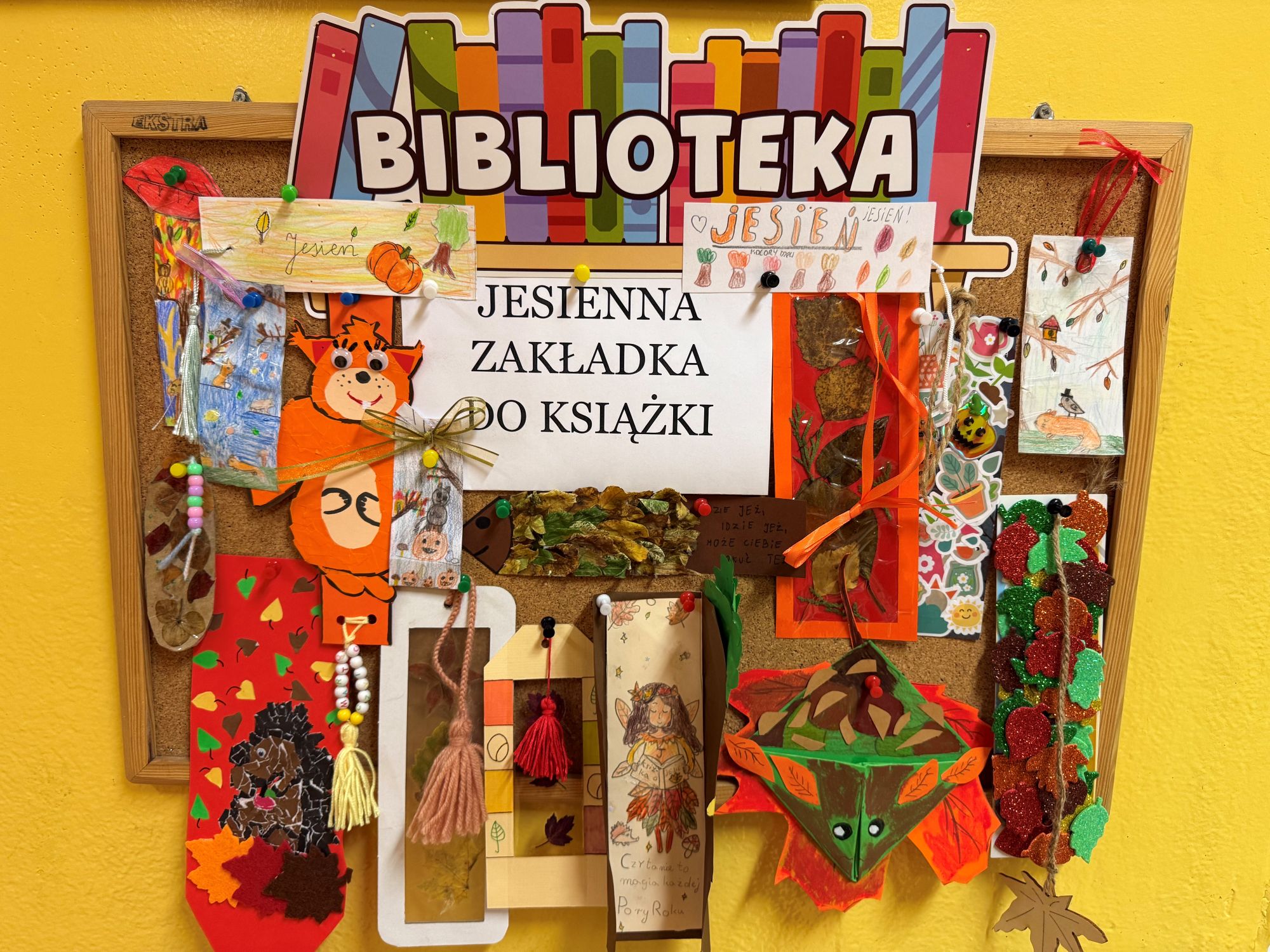 Uczniowie wykazali się wyjątkową kreatywnością i przynieśli piękne jesienne zakładki do książek, które można podziwiać przed wejściem do sali biblioteki szkolnej.