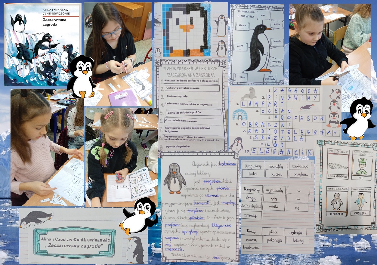 Uczniowie klasy 2a z dużym zaciekawieniem omawiali lekturę autorstwa Aliny i Czesława Centkiewiczów pt. „Zaczarowana zagroda”. Wszyscy z ogromnym zaangażowaniem pracowali w swoich „Lekturnikach”. Dzieci z zainteresowaniem oglądały filmy edukacyjne o życiu pingwinów, poznawały ich charakterystykę oraz środowisko życia.