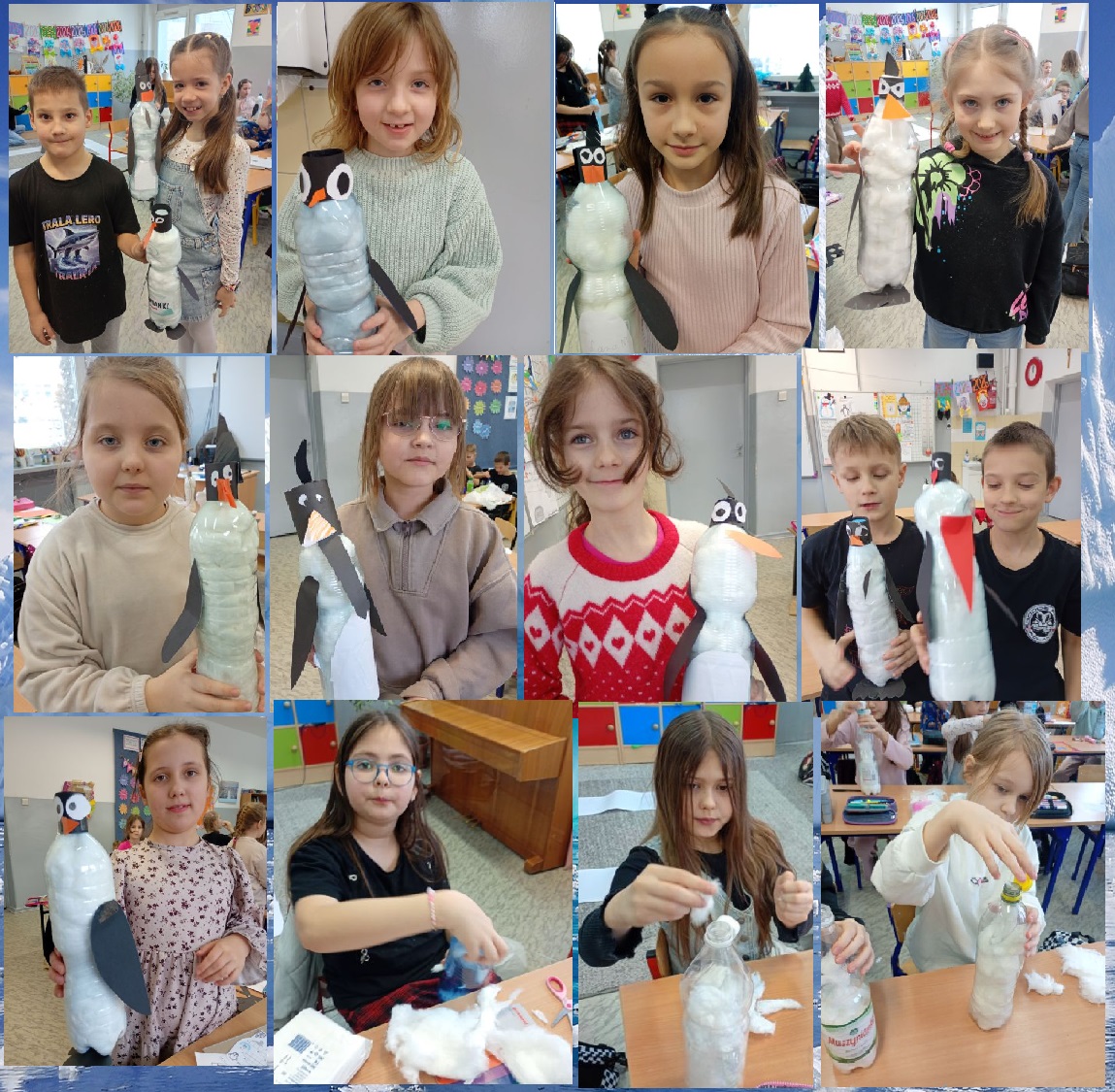 Na zajęciach informatycznych dzieci rysowały pingwiny w programie Paint. Na zakończenie naszych zmagań uczniowie wykonali również własne pingwinki z wykorzystaniem plastikowych butelek, waty oraz kolorowego papieru, co sprawiło im wiele radości. Dzieci wykazały się ogromnym zaangażowaniem i kreatywnością.