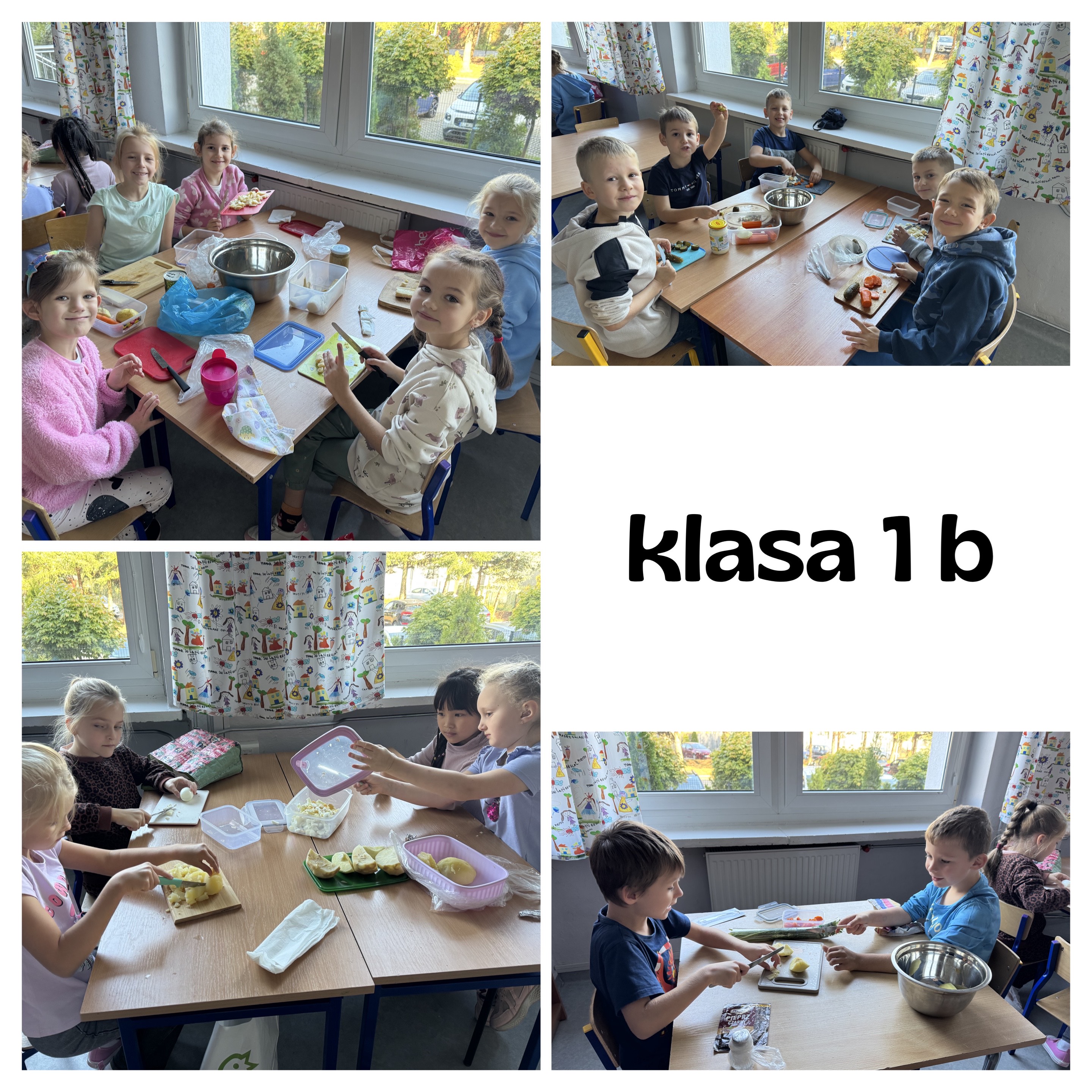 Uczniowie klasy 1b przekonali się, że zdrowe jedzenie może być nie tylko wartościowe, ale także bardzo smaczne. W ramach zajęć promujących zdrowy styl życia dzieci własnoręcznie przygotowały świeży sok jabłkowo–marchewkowy oraz tradycyjną sałatkę jarzynową. Pierwszoklasiści z ogromnym zaangażowaniem kroili warzywa i owoce, ucząc się przy tym, jak ważna jest współpraca i dbanie o bezpieczeństwo podczas pracy w kuchni. Każdy miał okazję sprawdzić się w roli małego kucharza, a efekty wspólnych starań okazały się znakomite. Największą nagrodą była możliwość spróbowania własnoręcznie przygotowanych potraw. Sok okazał się orzeźwiający i pełen witamin, a sałatka jarzynowa – zdrowa, kolorowa i pyszna. Zajęcia udowodniły, że zdrowe jedzenie może być świetną zabawą, a przygotowywanie posiłków to doskonała okazja do nauki i wspólnego spędzania czasu.