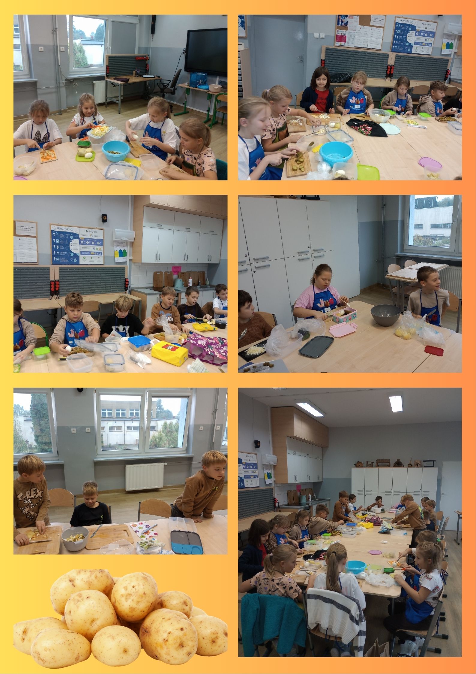 Uczniowie klasy 3b, podczas zajęć technicznych, przygotowali sałatkę ziemniaczaną. Podczas pracy trzecioklasiści, nie tylko doskonalili swoje umiejętności kulinarne, ale przekonali się również, że praca zespołowa przynosi wspaniałe efekty. Była to także okazja do powtórzenia i utrwalenia wiadomości o roślinach okopowych, które są ważnym źródłem witamin oraz składników odżywczych. Sałatka była pyszna!